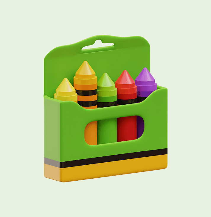 Choose from Ocean Blue Box, Jungle Green Box, or Candy Pink Box, each filled with a rainbow of bright crayons.